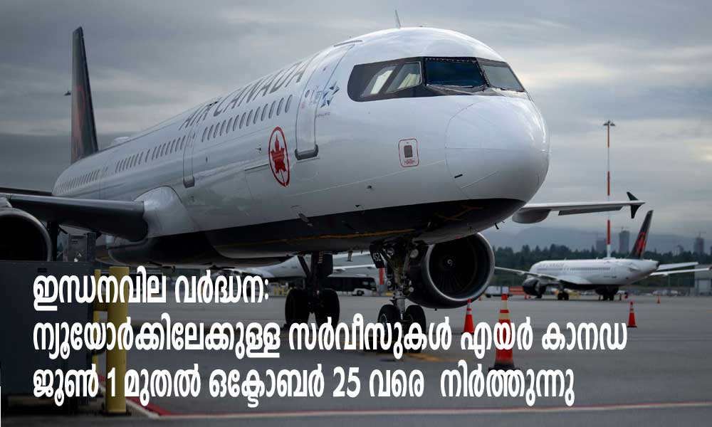 ടൊറന്റോ: വിമാന ഇന്ധനവില കുതിച്ചുയരുന്ന പശ്ചാത്തലത്തിൽ ന്യൂയോർക്കിലെ പ്രമുഖ വിമാനത്താവളമായ ജോൺ എഫ്. കെന്നഡിയിലേക്ക് (JFK) നടത്തുന്ന സർവീസുകൾ എയർ കാനഡ നിർത്തിവെക്കുന്നു. ജൂൺ 1 മുതൽ ഒക്ടോബർ 25 വരെയാണ് ഈ നിയന്ത്രണം.