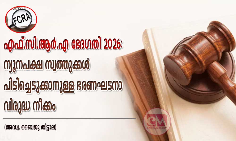 2026-ലെ വിദേശ സംഭാവന നിയന്ത്രണ നിയമത്തിൽ (FCRA) കൊണ്ടുവന്നിരിക്കുന്ന പുതിയ ഭേദഗതി, രാജ്യത്തെ നിയമവ്യവസ്ഥകൾ പാലിക്കാതെ ഇന്ത്യയിലെ ക്രിസ്ത്യൻ സമൂഹങ്ങളെ ഭയപ്പെടുത്താനും അവരുടെ സ്വത്തുക്കൾ കണ്ടുകെട്ടാനുമുള്ള ഒരു ഗൂഢനീക്കം മാത്രമാണ്. കേരളത്തിലെ നിയമസഭാ തിരഞ്ഞെടുപ്പിന് തൊട്ടുമുമ്പ് ഇത് അവതരിപ്പിച്ചത് ഭയം വിതയ്ക്കാനുള്ള ബിജെപി സർക്കാരിന്റെ രാഷ്ട്രീയ തന്ത്രമായി മാത്രമേ കാണാനാകൂ. രാജ്യത്തിന്റെ ഭരണഘടനാ തത്വങ്ങളുടെ നഗ്നമായ ലംഘനമാണിത്. ഇന്ത്യയിലെ ന്യൂനപക്ഷ സമുദായങ്ങളുടെ സ്വത്ത് തട്ടിയെടുക്കാനുള്ള ഒരു നിയമം മാത്രമായി ഇത് മാറുന്നു.