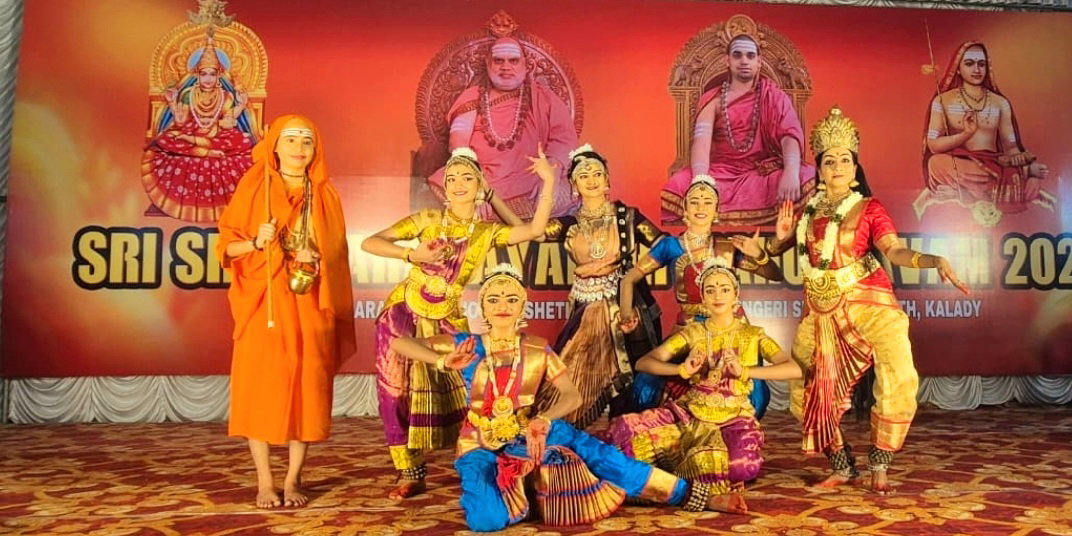 കാലടിയിൽ ശ്രീ ശങ്കരജയന്തി 2026 നോടനുബന്ധിച്ച് നടന്ന "ദേവീ ശങ്കരം" നൃത്തശിൽപം കാണികൾക്ക് കണ്ണിനും മനസിനും വിരുന്നായി മാറി. ശനിയാഴ്ച്ച ആദിശങ്കര ജൻമഭൂമി ക്ഷേത്രത്തിൻ്റെ കമനീയ വേദിയിൽ സന്യാസി വര്യൻമാരും ഭക്തജന സഹസ്രങ്ങളും നിറഞ്ഞ സദസിന് മുന്നിലാണ് ദേവീ ശങ്കര നൃത്ത ശിൽപം അരങ്ങേറിയത്. ആദിത്യ സ്കൂൾ ഓഫ് ഡാൻസ് മാണിക്യമംഗലം അവതരിപ്പിച്ച ഈ പരിപാടി ഗുരു ഡോ: ലക്ഷ്മി എസ് മേനോൻ ആണ് ചിട്ടപ്പെടുത്തി വേദിയിൽ അവതരിപ്പിച്ചത്.