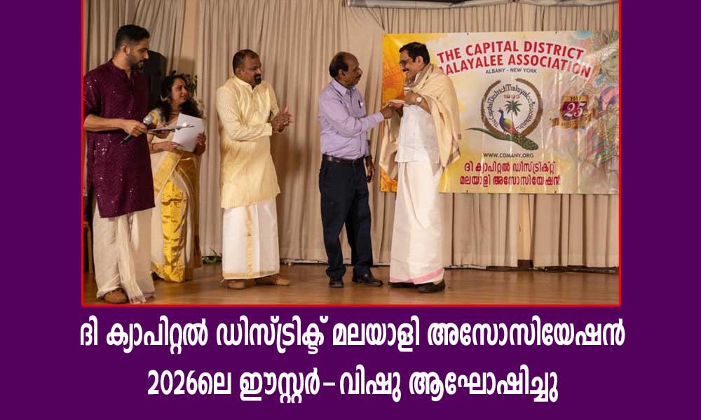 ആല്ബനി: ന്യൂയോര്ക്കിന്റെ ക്യാപിറ്റലായ ആല്ബനിയിലെ മലയാളികളുടെ കൂട്ടായ്മയായ ദ ക്യാപിറ്റല് ഡിസ്ട്രിക്ട് മലയാളി അസോസിയേഷന്റെ 2026ലെ ഈസ്റ്റര്-വിഷു ആഘോഷങ്ങള് വിവിധ കലാപരിപാടികളോടെ നടത്തപ്പെട്ടു. ഏപ്രില് 18 ഉച്ചയ്ക്ക് 12 മണിക്ക് തുടങ്ങി വൈകീട്ട് 6 മണി വരെ ജര്മന്-അമേരിക്കന് ക്ലബിന്റെ ബാക്വിറ്റ് ഹാളില് വച്ചാണ് നടത്തപ്പെട്ടത്.